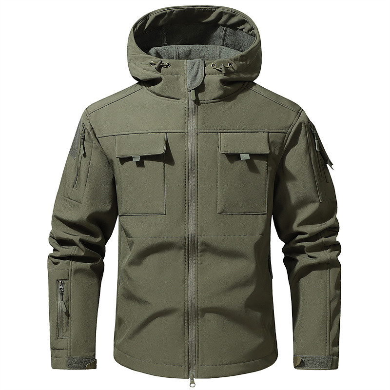 Men's Outdoor Jacket Softshell Jacket Hiking Jacket Vacation Daily Windproof Waterproof Pocket Fall Winter Plain Camouflage Fashion Classic Hooded Regular Gray Green Dark Gray Black Green Khaki Jacket