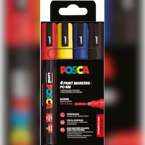 Paintmarker Uni Posca PC-5M med 4 stk. ass. flourescerende farver