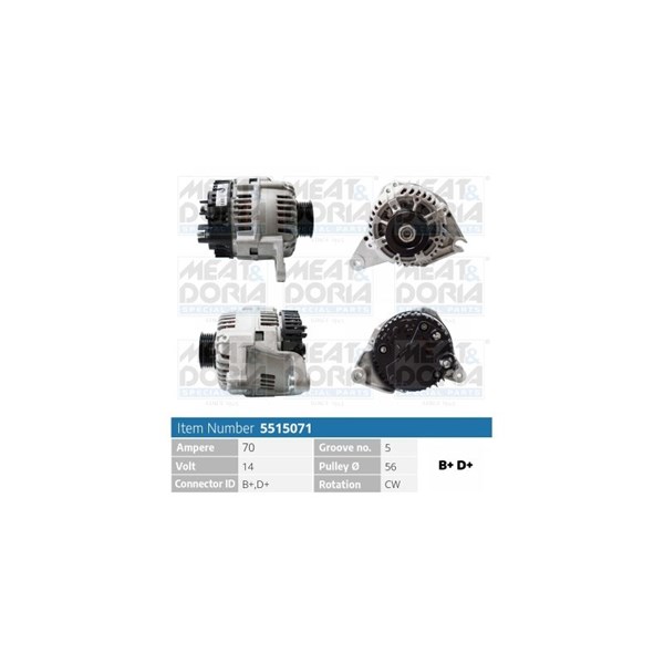 Laturi 14V 70A Meat & doria 5515071 - citroën, nissan, peugeot, rover - OE 5701 A5, 5705 HV, 5705 L1