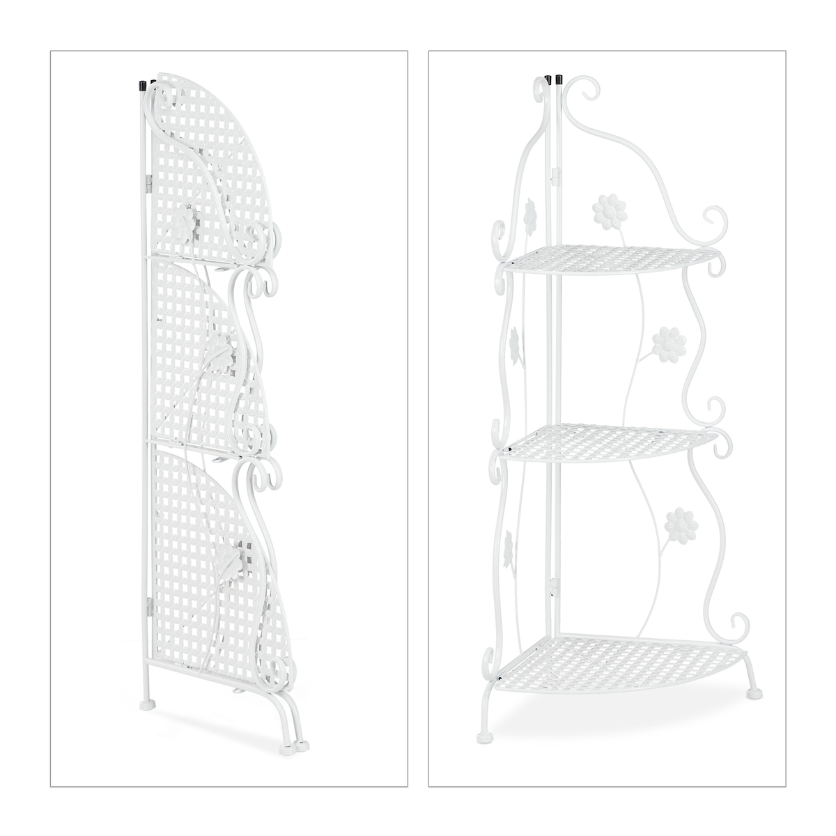 Relaxdays Blumenregal Metall, 3-stufiges Pflanzenregal, HxBxT: 82,5 x 31 x 31 cm, innen & außen, Retro Eckregal, weiß