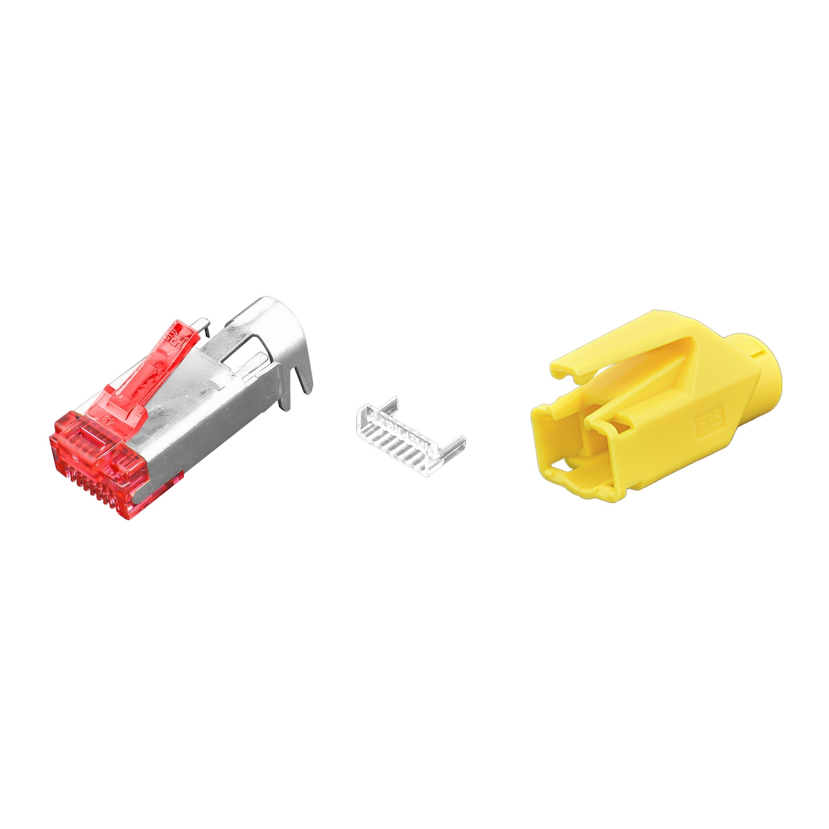 Hirose TM21 Crimp Stecker Cat.6 RJ45 mit Knickschutzhülle und Guide Plate gelb 100 Stück