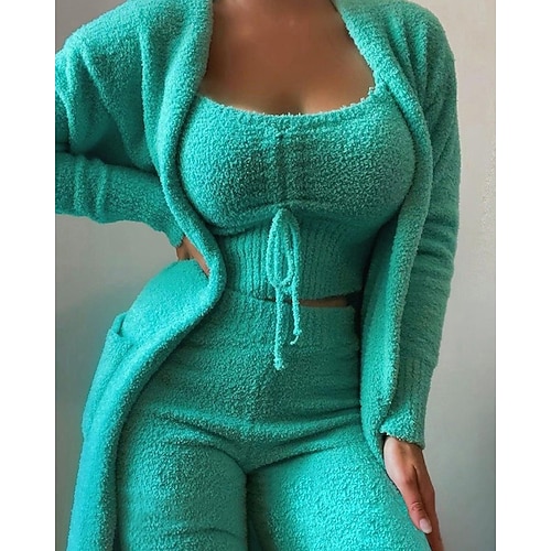 Per donna Pigiama Abbigliamento da Casa Set Pigiama Caldo Moda Casual Colore Puro Elastico in vita Pantalone Vacanza Casa Manica Lunga Girocollo Nero Bianco Rosa Rosso Cammello Autunno Inverno