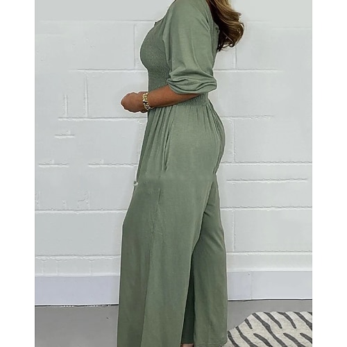 Per donna Abbigliamento da Casa Tutina Moda Sexy Casual Colore Puro Arricciato Pantalone Vacanza Casa Streetwear Manica Lunga Collo a U Blu Bianco Giallo Rosa Viola Estate Primavera Vestibilit