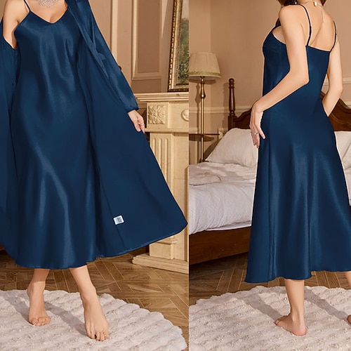 Per donna Abbigliamento da Casa Accappatoio Camicia da Notte Moda Casual Morbido Colore Puro Patchwork Vestiti Casa Vacanza Manica Lunga Scollo a V Nero Champagne Rosa Vino Blu marino Estate