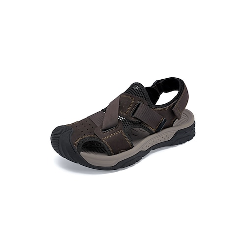 sandali da uomo in similpelle marrone con punta aperta, design regolabile per spiaggia, escursionismo e viaggi estivi
