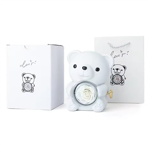 Scatola portagioie girevole in plastica a forma di orso abbracciabile, romantica e carina, scatola regalo con sapone, espositore per gioielli a forma di rosa, regalo per compleanno, festa della mamma,