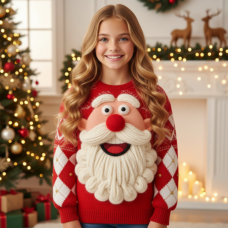 Christmas Girls' 3D Santa Claus Ugly Christmas Sweater Christmas Gift Sweater Long Sleeve 3D Print Fall Winter Fashion Party Kids 4-12 Years Crew Neck Outdoor Daily Regular Fit