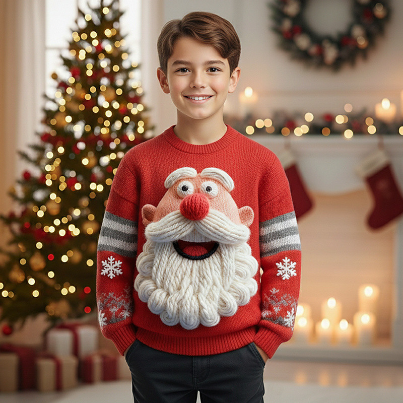 Christmas Boys' 3D Santa Claus Ugly Christmas Sweater Christmas Gift Sweater Long Sleeve 3D Print Fall Winter Fashion Party Kids 4-12 Years Crew Neck Outdoor Daily Regular Fit