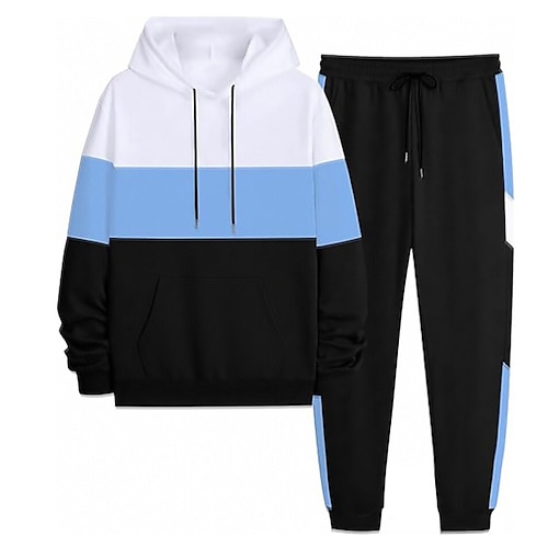 Per uomo Blocco di colori 2 pezzi Set di felpe 3D Tuta Felpa con Cappuccio Manica Lunga Pantaloni lunghi Con Cappuccio Casual Quotidiano Athleisure Stampa 3D Blocco di colore Primavera Autunno Inverno