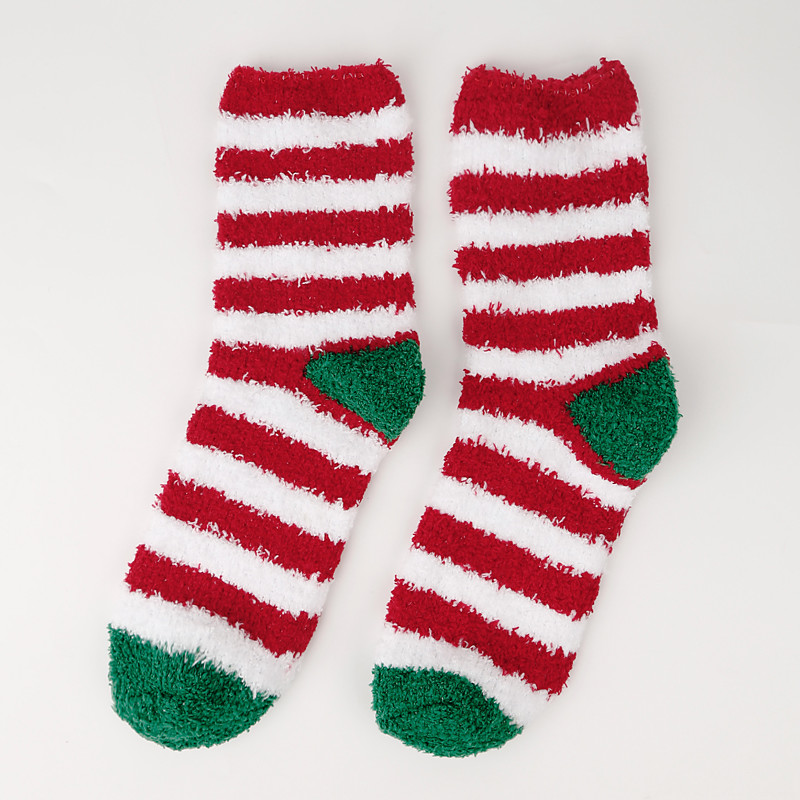 Christmas Women's Slipper Socks, Cartoon Coral Fleece Plush Crew Socks, Mid-Calf Fluffy Floor Socks, Christmas Holiday Cross-Border Edition