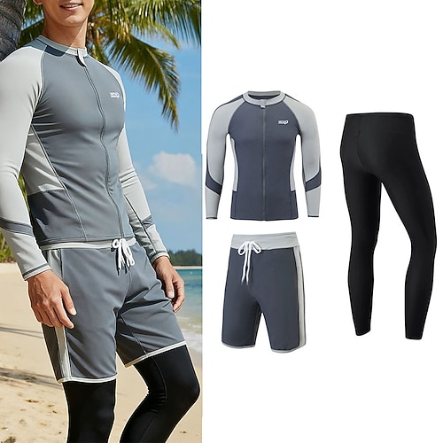 Per uomo Rash Guard in 3 pezzi Tuta da surf Set di costumi da bagno Color-blocking Protezione Solare UV Asciugatura Rapida Manica Lunga Costume da Bagno Spiaggia Sport Acquatici Nuoto Primavera