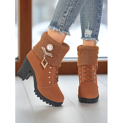 stivali da donna larghi marrone scuro con fibbia – stivaletti casual con tacco basso da indossare tutti i giorni