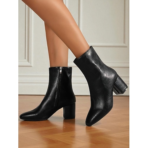 stivaletti da donna in similpelle color crema con punta quadrata, eleganti stivaletti con tacco a blocco e cerniera per l'ufficio, le feste e gli outfit autunnali