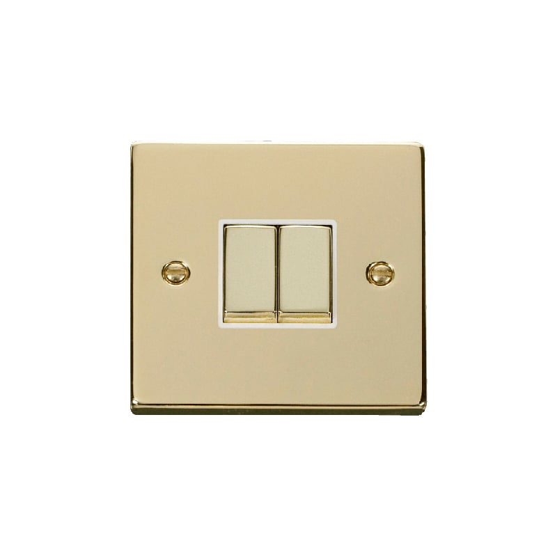 Click Deco 2 Gang 2 Way Ingot 10AX Switch Polished Brass White Inserts