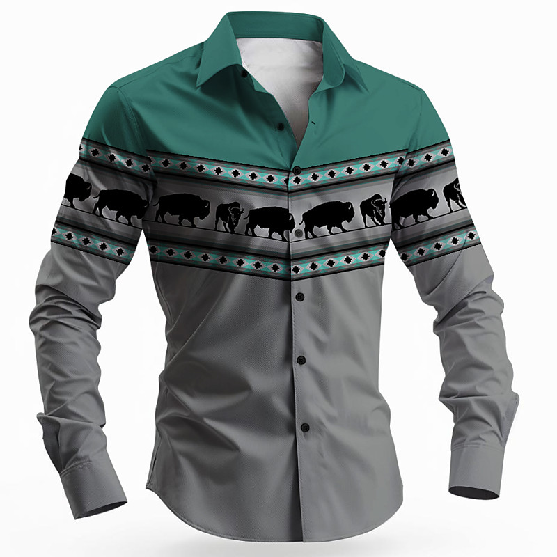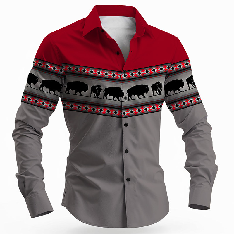 Men's Aztec Bull Ethnic Shirt Button Up Shirt Long Sleeve Vintage Retro Outdoor Casual Spring Fall Turndown 3D Print Collared Shirts Red Green Gray
