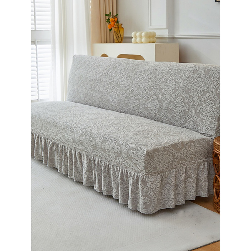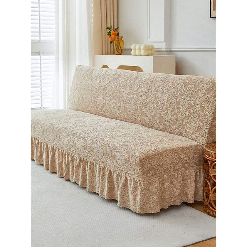 1 Pc High Elasticity Jacquard Velvet Skirt Style Sofa Bed Cover Full Folding Armless Sofa Bed Protector Integrated All-Season Sofa Cover for Living Room Home Use