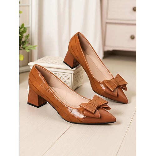 décolleté da donna con tacco a blocco in similpelle verniciata rossa – tacchi a spillo con fiocco e motivo a griglia per ufficio, feste e occasioni eleganti