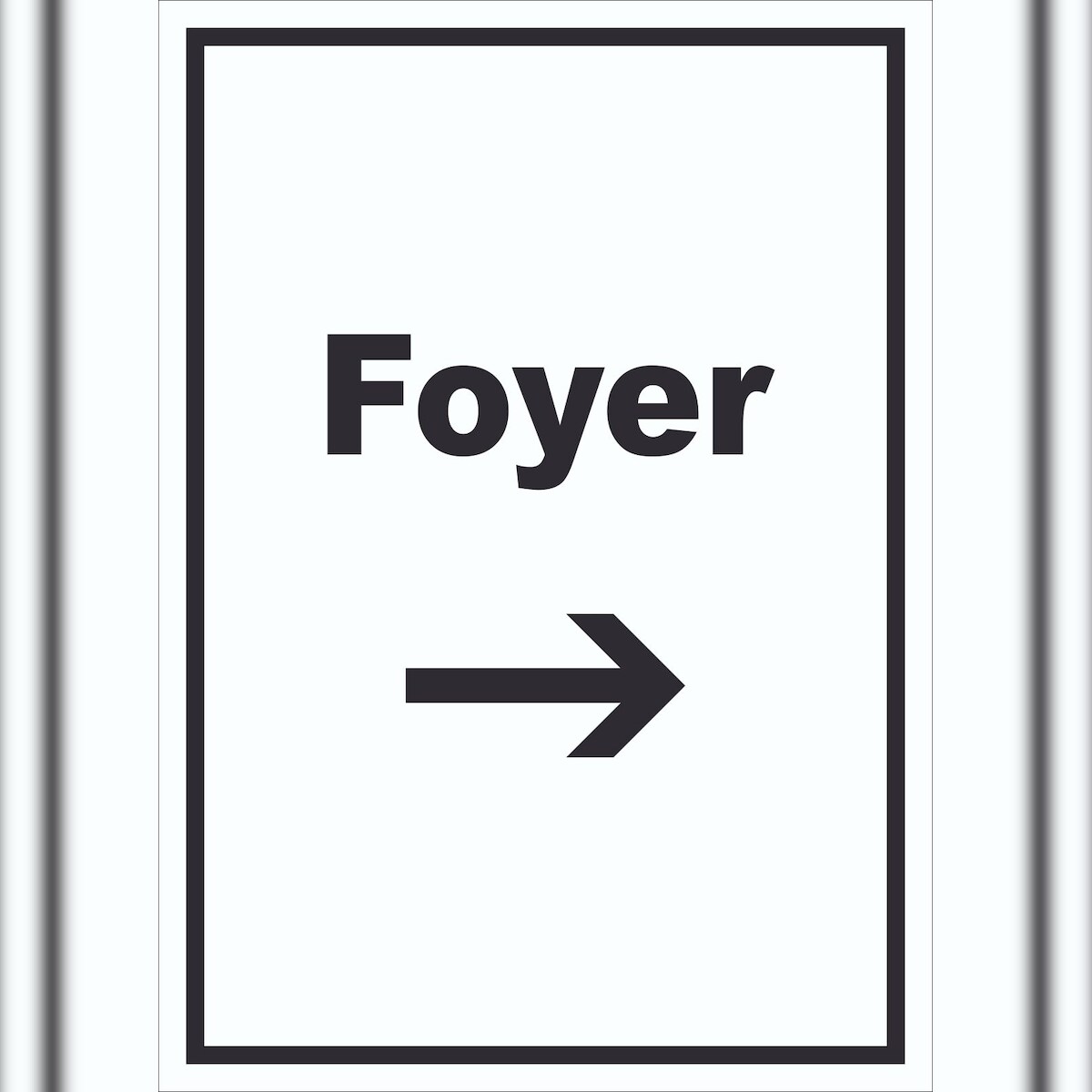 HB-Druck Foyer Schild mit Text und Richtungspfeil rechts Eingangshalle hochkant A0 Rückseite selbstklebend