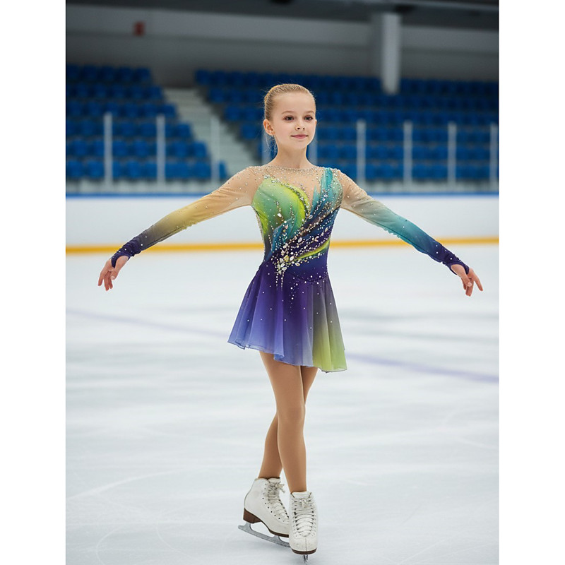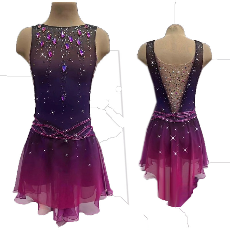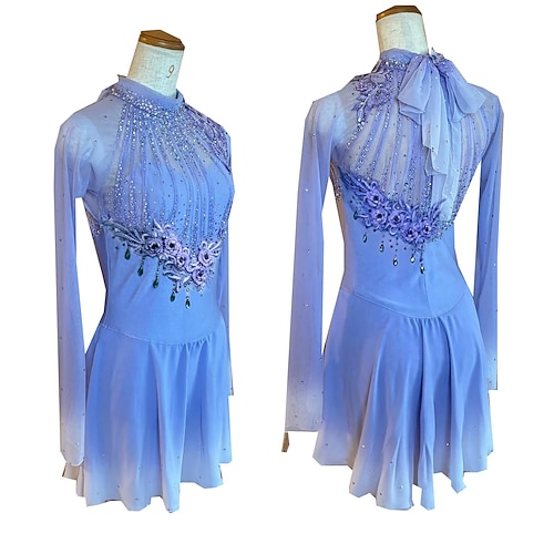 Figure Skating Dress Women's Girls' Ice Skating Dress Purple Thumbhole Halo Dyeing Mesh Spandex Stretchy Training Practice Professional Skating Wear Thermal Warm Classic Crystal / Rhinestone Long