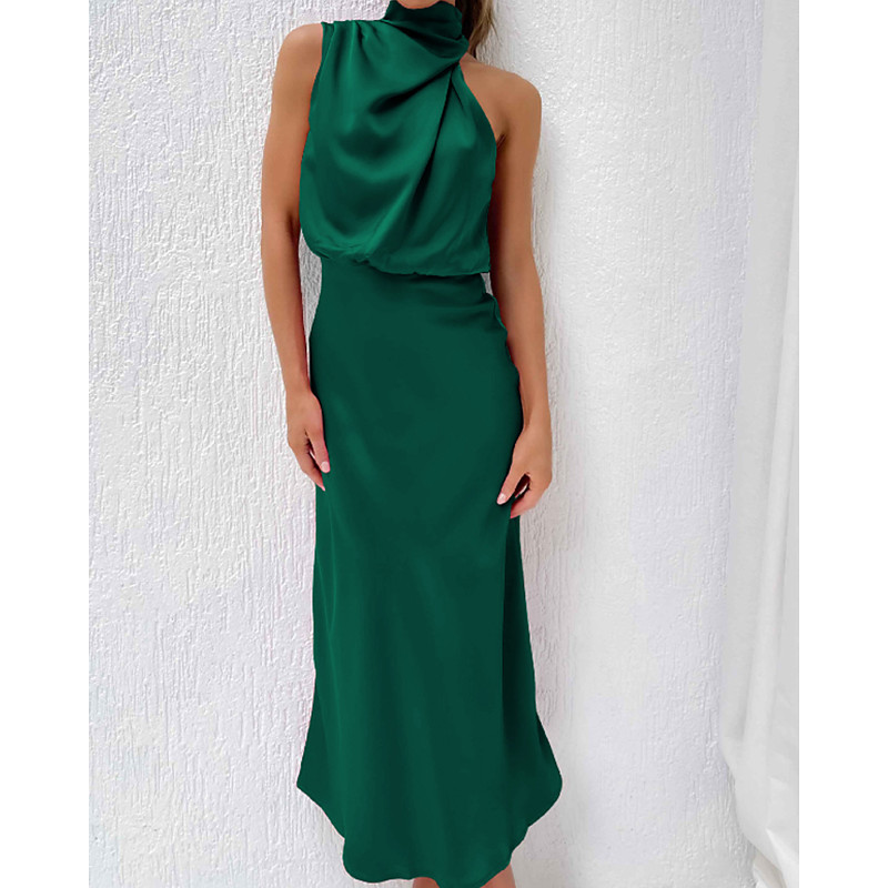 Women's Long Dress Maxi Dress Satin Dress Black Dress Prom Dress Party Dress Elegant Modern Evening Party Party Special Occasion Regular Fit Plain Sleeveless High Neck Aqua Blue Black Light Green Wine