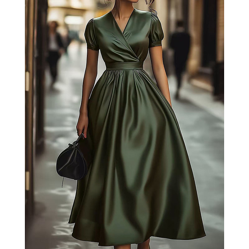 Women's Long Dress Maxi Dress Prom Dress Party Dress Cocktail Dress Elegant Fashion Modern Evening Party Party Special Occasion Regular Fit Plain Short Sleeve V Neck Green Spring Fall Winter