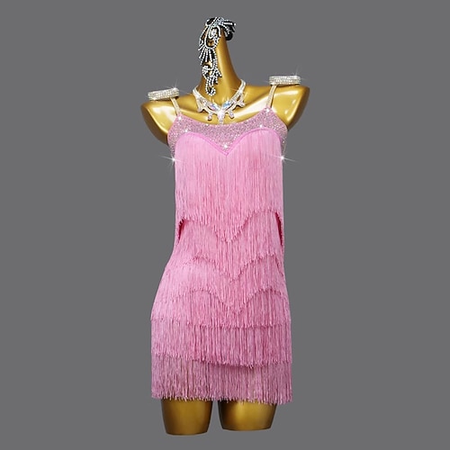 Danza Latina Vestito Strass Nappa Giunzione Per donna Performance Allenamento Senza Maniche Chinlon Rete Spandex
