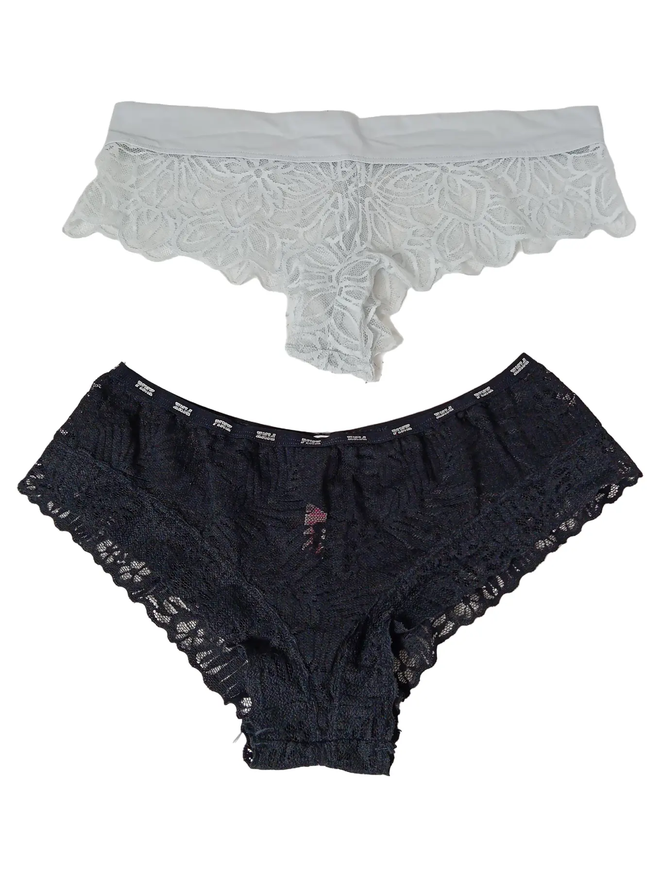 VICTORIA'S SECRET PINK Unterhose Set M Schwarz Weiß Spitze