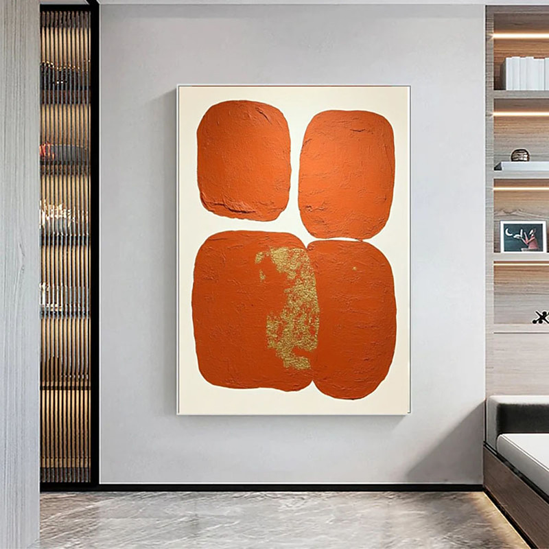 Hand Painted Warm Orange Painting Architectural Abstract Wall Art Wabi Sabi Wall Art Minimalist Orange Painting Home Decor