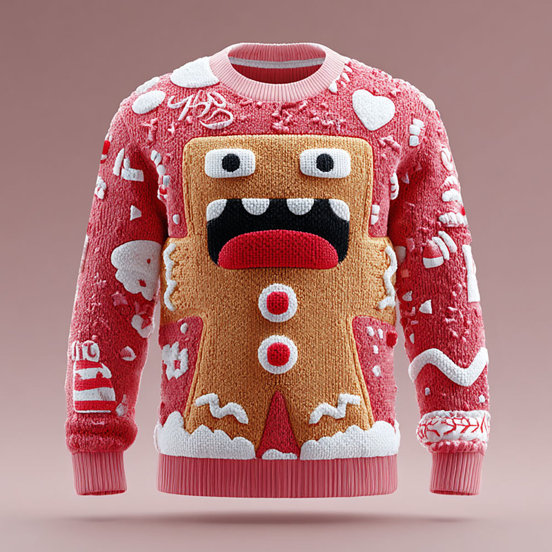 Ugly Christmas Sweater Men's 3D Print Gingerbread Pullover Sweater Jumper Knitwear Crewneck Casual Vacation Daily Festival 3D Print Keep Warm Long Sleeve Spring Fall Winter Red -1 Red -2 Brown