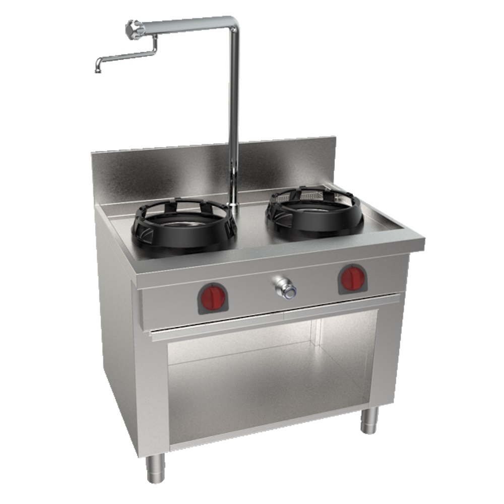 EURAST - Gekühltes wok mit 2 gasbrennern auf stütze, 1 wassersäule - 1000x700x850 mm - 35 Kw - 32107CK5