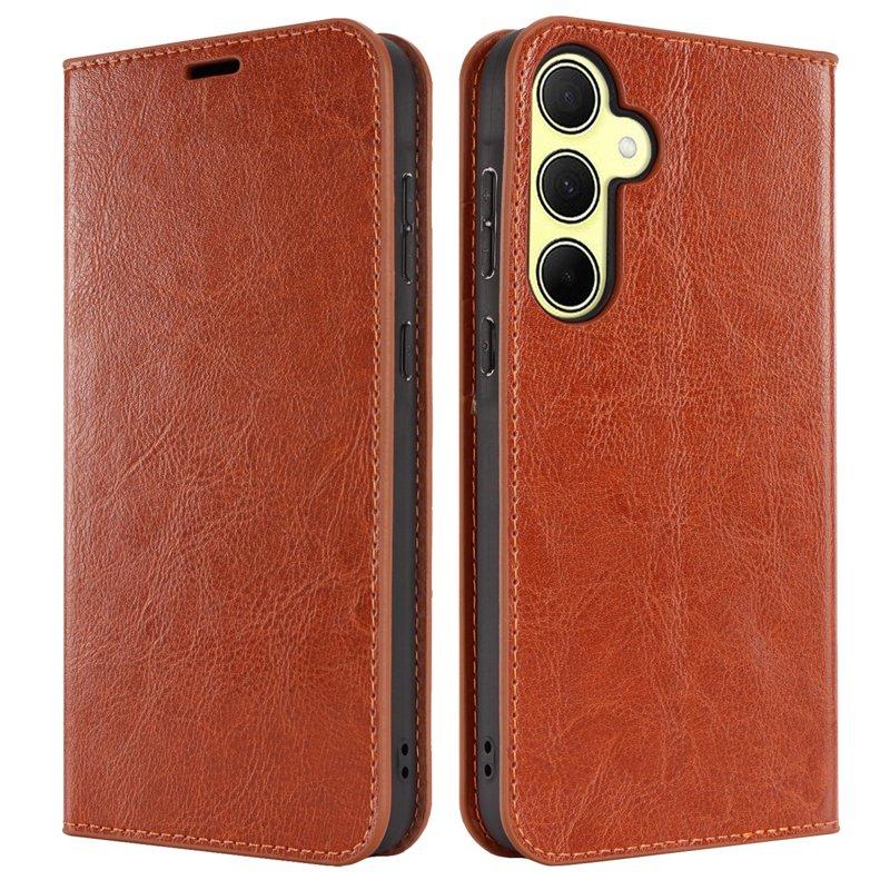 Crazy Horse Samsung Galaxy A35 5G Skal Äkta Läder Ställ - Ljusbrun