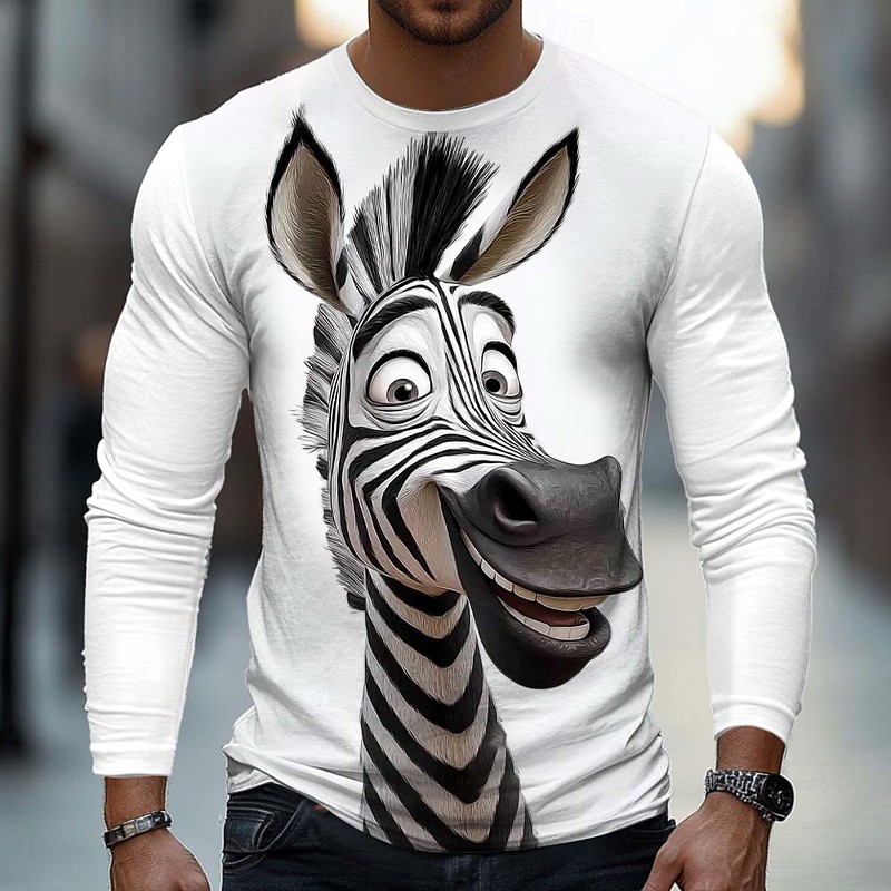 Men's Animal Funny Zebra Pattern T Shirt Long Sleeve T shirt 3D Print Crew Neck Shirt Fashion Basic Casual Daily Street Blue White 1 White 2 Summer Spring Clothing Apparel S M L XL XXL XXXL