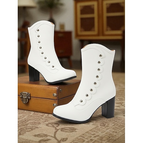 stivali da donna in stile vittoriano con bottoni, neri e bianchi, rifiniture smerlate e tacco a blocco - stivaletti in stile gotico edoardiano anni '20 per donna, ideali per cosplay, steampunk abiti