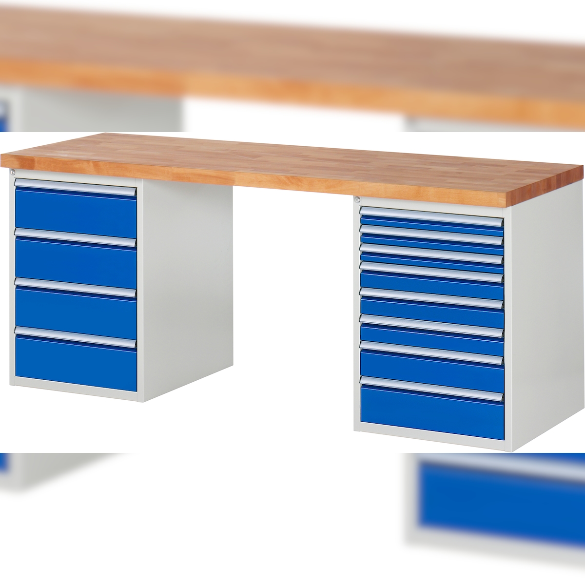PROREGAL Werkbank Serie 7000 - Modell 7517 | HxBxT 84x250x90cm | 14x Schublade | Schubladenmaße 4x60 + 4x90 + 4x120 + 2x180mm