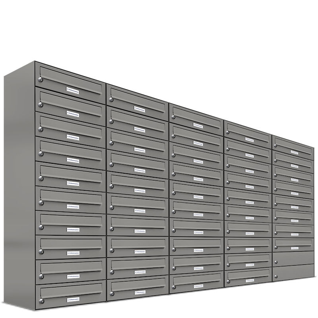AL Briefkastensysteme 48 Fächer Premium Wand Briefkasten Anlage in RAL 9007 Aluminium Grau, Post A4, robust, wetterfest, Artikelnummer: 132P48EA5P9007