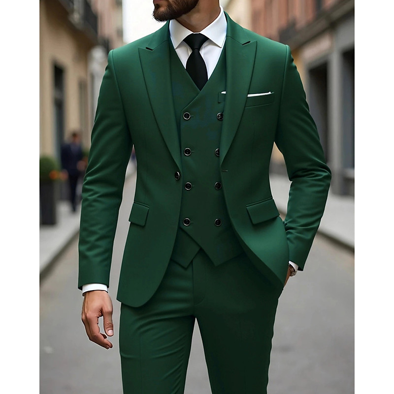 Men's BlazerVestDress Pants Blazer Business Work Wedding Fashion Streetwear Fall Winter Terylene Plain 3-Piece Single Breasted Blazer Black Champagne Pink khaki