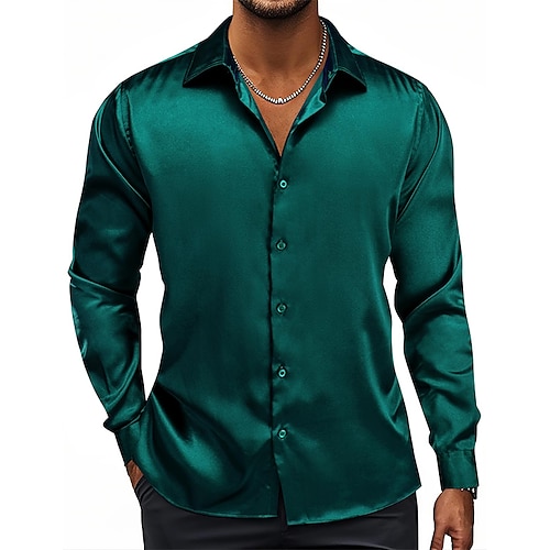 Per uomo Camicia Camicia in raso Camicia casual Camicia con Bottoni Camicie sbottonate Semplice Quotidiano Uscire Blu chiaro Nero Bianco Vino Manica Lunga Bavero Primavera Autunno Tutte le stagioni