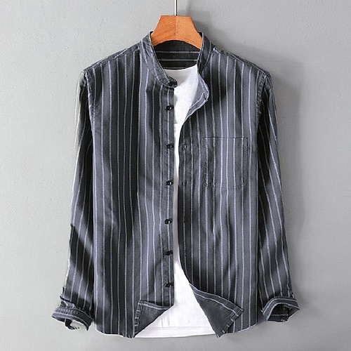 Per uomo Camicia in lino e cotone Camicia con colletto cinese Camicia con colletto alla coreana Camicia estiva Camicia da spiaggia Camicie a righe A strisce Da mare Strada Nero Bianco Grigio Manica