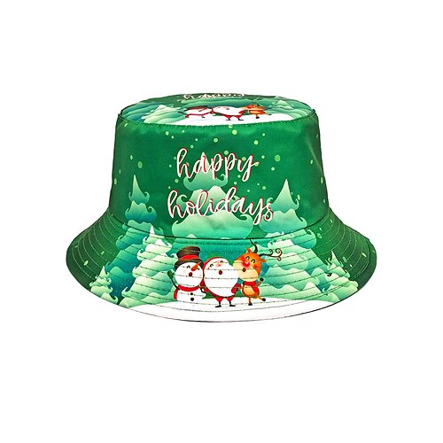Cappello da pescatore natalizio da donna, in poliestere, con stampa di Babbo Natale e renne, copricapo per feste e celebrazioni invernali