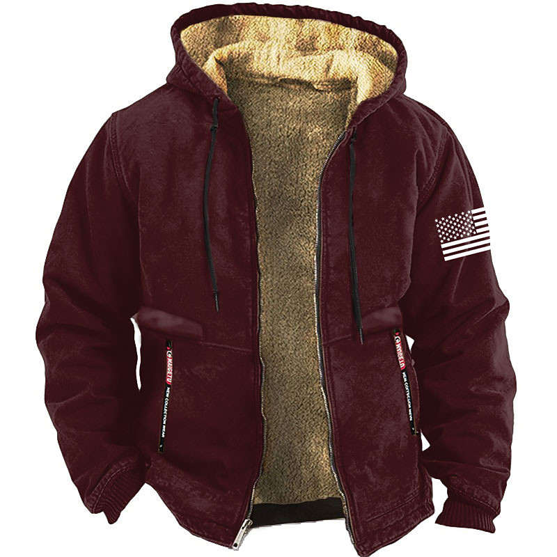 US America 250 Year Anniversary Men's American US Flag Fleece Hoodie Sweatshirt Daily Classic Vintage Retro Long Sleeve Crew Neck Outdoor Home Travel Black Burgundy Blue Brown Military Green