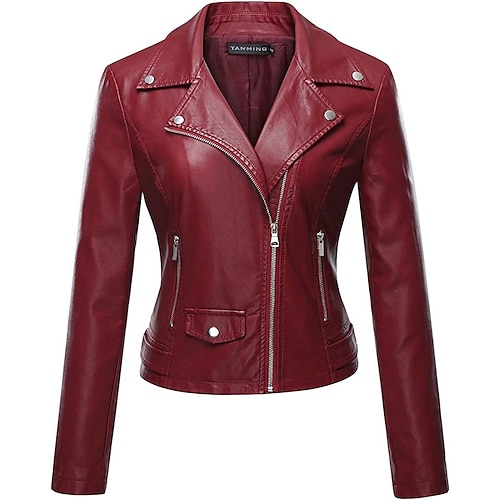 Per donna Giacca in Ecopelle Giacca da Biker Caldo Confortevole Cerniera Tasca Casual Tinta unica Vacanza Streetwear Casuale Abbigliamento quotidiano Corto Collo ripiegato Vestibilità regolare Manica