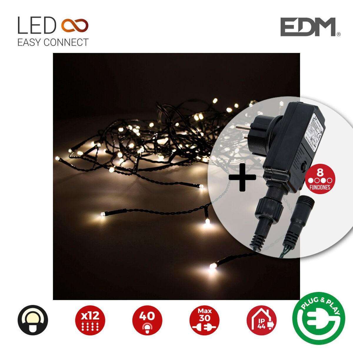 EDM LED gardin Icicle Easy-Connect, varmt hvidt lys, 200 × 50 cm, IP44, hvid