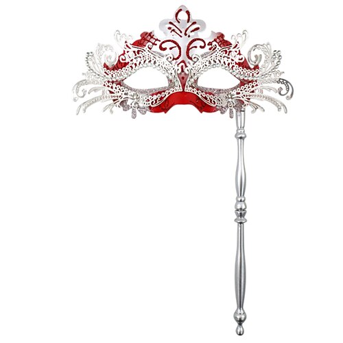 maschera da ballo da donna con strass e manico - elegante oro maschera rossa portatile per feste di Capodanno, balli eventi di danza formale