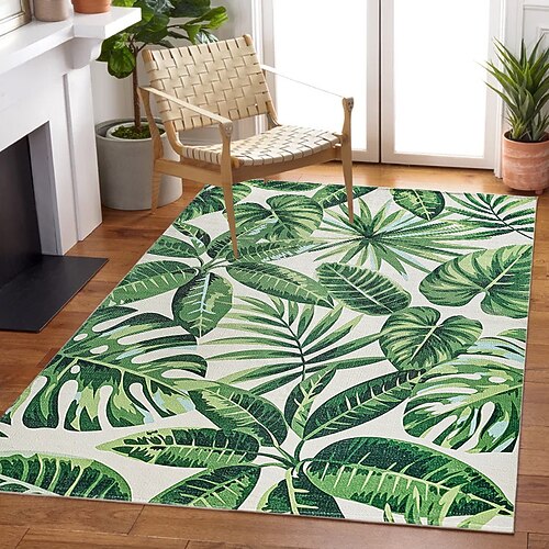 Tappeto con foglie tropicali, effetto cashmere, morbido, a pelo corto, lavabile, antiscivolo, verde botanico, per interni ed esterni, ideale per soggiorno, camera da letto e sala da pranzo.