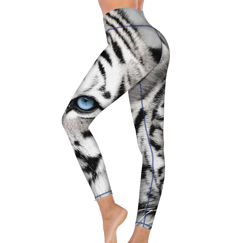 Women's Yoga Pants Butt Lift Tummy Control High Waist Gym Workout Running Fitness Tights Leggings Animal Patterned Black White Fall Winter Sports Activewear High Elasticity
