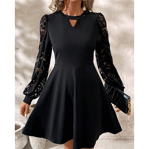 Per donna Mini Abito Abito nero Abito in Pizzo Elegante Moderno Manica a Lanterna All'aperto Compleanno Cocktail party Taglia piccola Semplice Manica Lunga Girocollo Nero Primavera Autunno