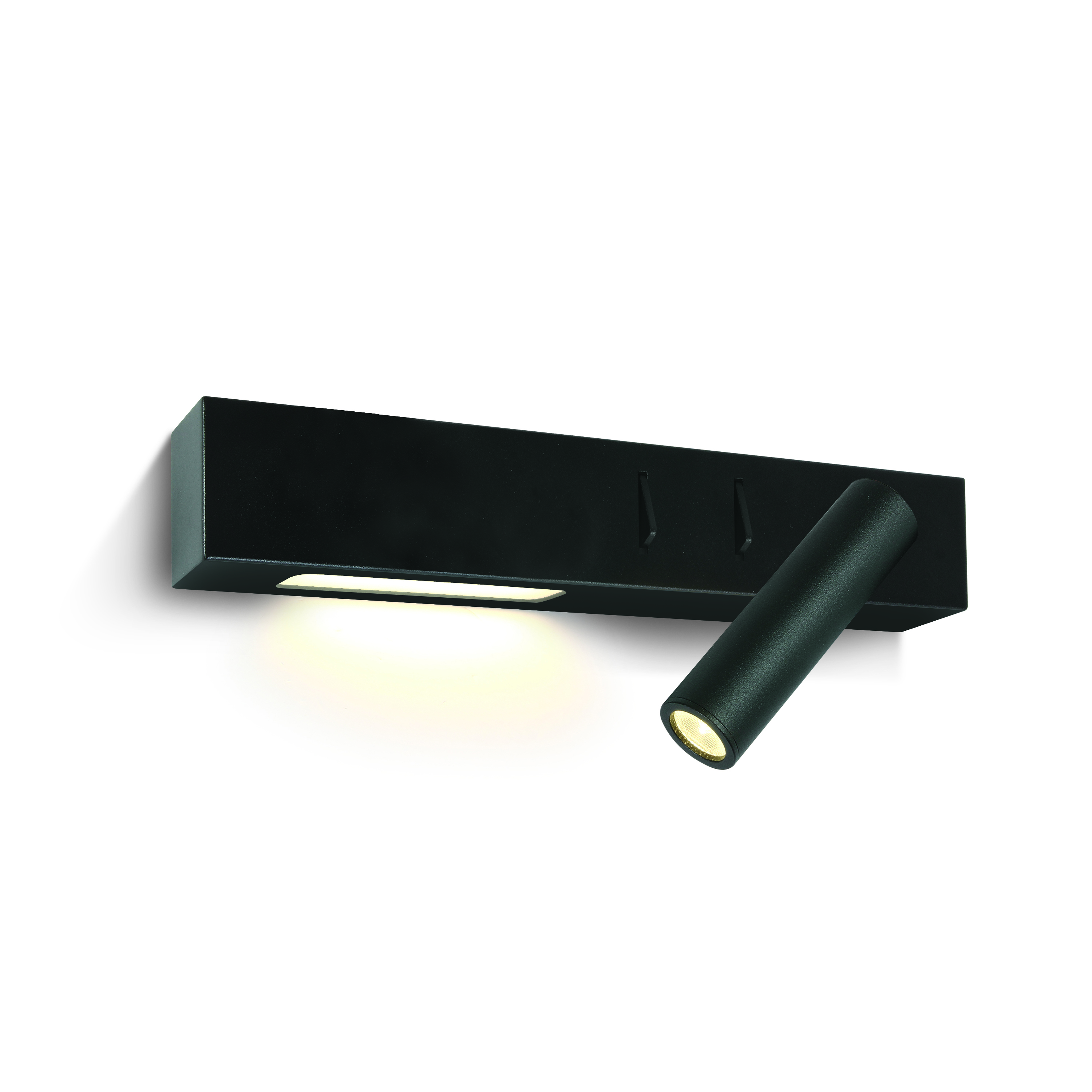 ONE Light Reading Spot - wandspot rechts met schakelaar - 30 x 3,5 x 5 cm - 3W + 6W LED incl. - zwart