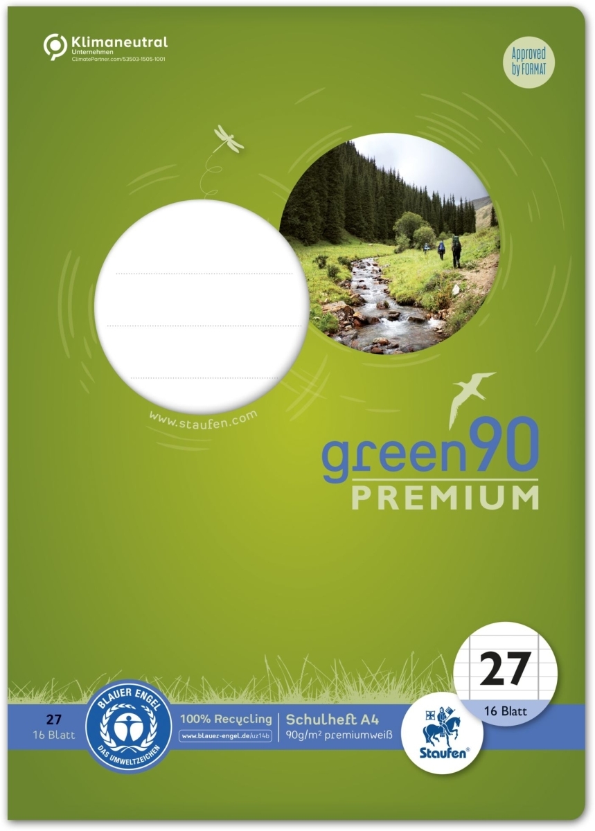 Staufen Schulheft Green A4 liniert mit Rand Lineatur 27 16 Blatt Packung mit 10 Stück