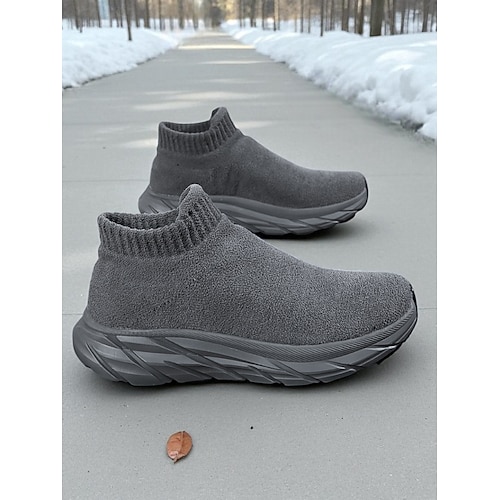 Herren-Sneaker zum Hineinschlüpfen aus strukturiertem Strick, bequeme Passform mit modischer dicker Sohle, lässige Streetwear-Schuhe