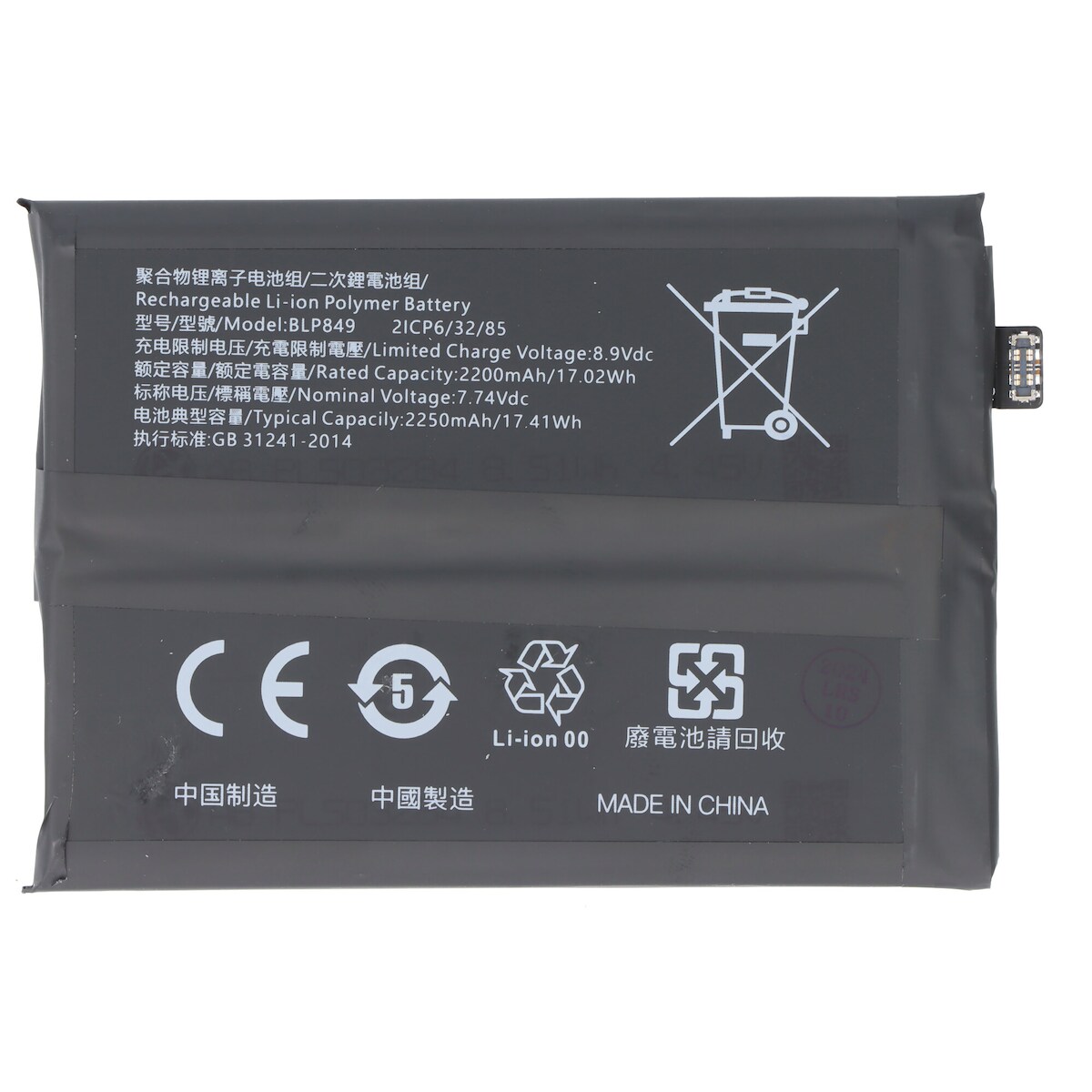 AccuCell Akku passend für OnePlus GT 5G, Li-Polymer, 7,74V, 2250mAh, 17,4Wh, ohne Werkzeug